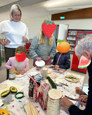 Naast het maken van snacks was er nog veel meer te beleven. Bezoekers konden verschillende hapjes proeven, een glaasje fruitwater tappen en inspiratie opdoen uit boeken over een gezonde leefstijl. De vide van de bibliotheek was omgetoverd tot een mini-leefstijlmarkt waar jong en oud zich kunnen laten verrassen.